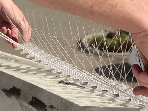 Stainless steel bird spikes to prevent pigeons & birds from sitting on ledges, AC units, parapets. Humane, durable & effective.